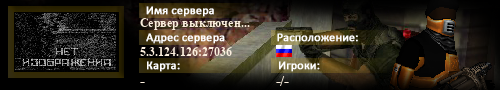 | Статус : Выключен | Страна Адрес сервера : 5.3.124.126:27036 Игра : Карта : - Игроки : - / - | Загружен на : Сайт сервера : Не задан Обновлен в : 00:04 | Пинг : 0 мс | Версия : 0.0.0 ОС: Windows | VAC - Disabled | ||