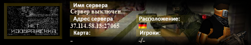 | Статус : Выключен | Страна Адрес сервера : 37.114.58.13:27065 Игра : Карта : - Игроки : - / - | Загружен на : Сайт сервера : gamespy.ro/forum Обновлен в : 22:18 | Пинг : 0 мс | Версия : 0.0.0 ОС: Windows | VAC - Disabled | ||