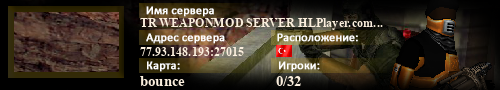 | Статус : Включен | Страна Адрес сервера : 77.93.148.193:27015 Игра : Half-Life 1 Карта : bounce Игроки : 0 / 32 | Загружен на : Сайт сервера : turkuazforum.com Обновлен в : 23:42 | Пинг : 75 мс | Версия : 1.1.2.7/Stdio ОС: Linux | VAC - Secured | ||