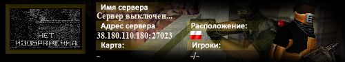 | Статус : Выключен | Страна Адрес сервера : 38.180.110.180:27023 Игра : Counter-Strike : Source Карта : - Игроки : - / - | Загружен на : Сайт сервера : Не задан Обновлен в : 00:22 | Пинг : 0 мс | Версия : 0.0.0 ОС: Linux | VAC - Secured | ||