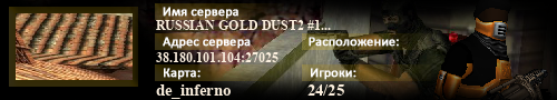 | Статус : Включен | Страна Адрес сервера : 38.180.101.104:27025 Игра : Counter-Strike : Source Карта : de_dust2 Игроки : (1)24 / 25 | Загружен на : Сайт сервера : Не задан Обновлен в : 09:18 | Пинг : 65 мс | Версия : 1.1.2.7/Std ОС: Linux | VAC - Secured | ||