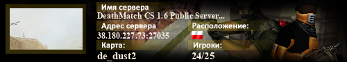 | Статус : Включен | Страна Адрес сервера : 38.180.227.73:27035 Игра : Counter-Strike : Source Карта : de_dust2 Игроки : (1)24 / 25 | Загружен на : Сайт сервера : Не задан Обновлен в : 22:35 | Пинг : 64 мс | Версия : 1.1.2.7/Std ОС: Linux | VAC - Secured | ||