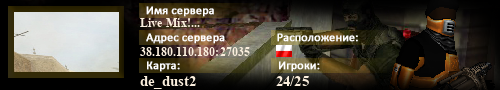| Статус : Включен | Страна Адрес сервера : 38.180.110.180:27035 Игра : Counter-Strike : Source Карта : de_dust2 Игроки : (1)24 / 25 | Загружен на : Сайт сервера : Не задан Обновлен в : 07:07 | Пинг : 61 мс | Версия : 1.1.2.7/Std ОС: Linux | VAC - Secured | ||
