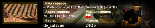 | Статус : Включен | Страна Адрес сервера : 38.180.110.180:27045 Игра : Counter-Strike : Source Карта : de_inferno Игроки : (1)24 / 25 | Загружен на : Сайт сервера : Не задан Обновлен в : 20:43 | Пинг : 63 мс | Версия : 1.1.2.7/Std ОС: Linux | VAC - Secured | ||