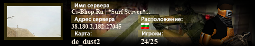 | Статус : Включен | Страна Адрес сервера : 38.180.2.182:27045 Игра : Counter-Strike : Source Карта : de_dust2 Игроки : (1)24 / 25 | Загружен на : Сайт сервера : Не задан Обновлен в : 17:27 | Пинг : 77 мс | Версия : 1.1.2.7/Std ОС: Linux | VAC - Secured | ||