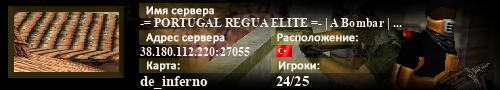 | Статус : Включен | Страна Адрес сервера : 38.180.112.220:27055 Игра : Counter-Strike : Source Карта : de_inferno Игроки : (1)24 / 25 | Загружен на : Сайт сервера : Не задан Обновлен в : 01:17 | Пинг : 59 мс | Версия : 1.1.2.7/Std ОС: Linux | VAC - Secured | ||