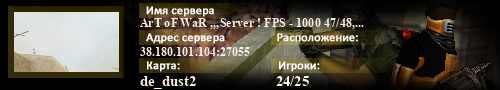 | Статус : Включен | Страна Адрес сервера : 38.180.101.104:27055 Игра : Counter-Strike : Source Карта : de_dust2 Игроки : (1)24 / 25 | Загружен на : Сайт сервера : Не задан Обновлен в : 13:28 | Пинг : 67 мс | Версия : 1.1.2.7/Std ОС: Linux | VAC - Secured | ||