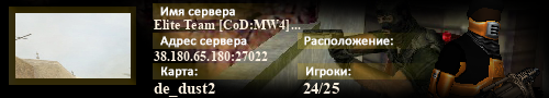 | Статус : Включен | Страна Адрес сервера : 38.180.65.180:27022 Игра : Counter-Strike : Source Карта : de_dust2 Игроки : (1)24 / 25 | Загружен на : Сайт сервера : Не задан Обновлен в : 13:07 | Пинг : 64 мс | Версия : 1.1.2.7/Std ОС: Linux | VAC - Secured | ||