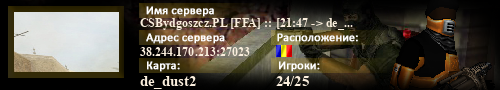 | Статус : Включен | Страна Адрес сервера : 38.244.170.213:27023 Игра : Counter-Strike : Source Карта : de_dust2 Игроки : (1)24 / 25 | Загружен на : Сайт сервера : Не задан Обновлен в : 07:27 | Пинг : 72 мс | Версия : 1.1.2.7/Std ОС: Linux | VAC - Secured | ||