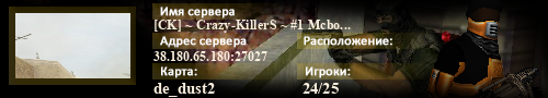 | Статус : Включен | Страна Адрес сервера : 38.180.65.180:27027 Игра : Counter-Strike : Source Карта : de_dust2 Игроки : (1)24 / 25 | Загружен на : Сайт сервера : Не задан Обновлен в : 08:05 | Пинг : 62 мс | Версия : 1.1.2.7/Std ОС: Linux | VAC - Secured | ||