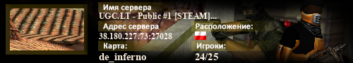 | Статус : Включен | Страна Адрес сервера : 38.180.227.73:27028 Игра : Counter-Strike : Source Карта : de_inferno Игроки : (1)24 / 25 | Загружен на : Сайт сервера : Не задан Обновлен в : 18:57 | Пинг : 63 мс | Версия : 1.1.2.7/Std ОС: Linux | VAC - Secured | ||
