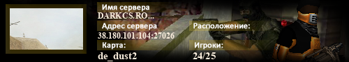 | Статус : Включен | Страна Адрес сервера : 38.180.101.104:27026 Игра : Counter-Strike : Source Карта : de_dust2 Игроки : (1)24 / 25 | Загружен на : Сайт сервера : Не задан Обновлен в : 11:16 | Пинг : 67 мс | Версия : 1.1.2.7/Std ОС: Linux | VAC - Secured | ||