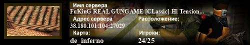 | Статус : Включен | Страна Адрес сервера : 38.180.101.104:27029 Игра : Counter-Strike : Source Карта : de_inferno Игроки : (1)24 / 25 | Загружен на : Сайт сервера : Не задан Обновлен в : 07:57 | Пинг : 69 мс | Версия : 1.1.2.7/Std ОС: Linux | VAC - Secured | ||
