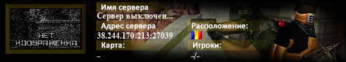 | Статус : Выключен | Страна Адрес сервера : 38.244.170.213:27039 Игра : Counter-Strike : Source Карта : - Игроки : - / - | Загружен на : Сайт сервера : Не задан Обновлен в : 21:38 | Пинг : 0 мс | Версия : 0.0.0 ОС: Linux | VAC - Secured | ||