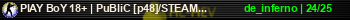 | Статус : Включен | Страна Адрес сервера : 38.180.2.182:27028 Игра : Counter-Strike : Source Карта : de_inferno Игроки : (1)24 / 25 | Загружен на : Сайт сервера : Не задан Обновлен в : 01:13 | Пинг : 78 мс | Версия : 1.1.2.7/Std ОС: Linux | VAC - Secured | ||