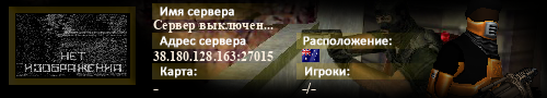 | Статус : Выключен | Страна Адрес сервера : 38.180.128.163:27015 Игра : Counter-Strike : Source Карта : - Игроки : - / - | Загружен на : Сайт сервера : Не задан Обновлен в : 00:23 | Пинг : 0 мс | Версия : 0.0.0 ОС: Linux | VAC - Secured | ||