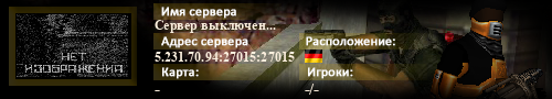 | Статус : Выключен | Страна Адрес сервера : 5.231.70.94:27015:27015 Игра : Карта : - Игроки : - / - | Загружен на : Сайт сервера : Не задан Обновлен в : 08:24 | Пинг : 0 мс | Версия : 0.0.0 ОС: Windows | VAC - Disabled | ||