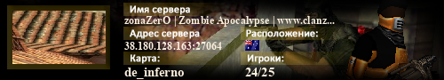 | Статус : Включен | Страна Адрес сервера : 38.180.128.163:27064 Игра : Counter-Strike : Source Карта : de_inferno Игроки : (1)24 / 25 | Загружен на : Сайт сервера : Не задан Обновлен в : 07:45 | Пинг : 366 мс | Версия : 1.1.2.7/Std ОС: Linux | VAC - Secured | ||
