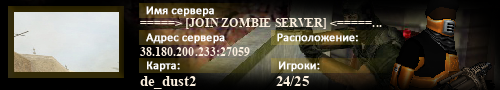 | Статус : Включен | Страна Адрес сервера : 38.180.200.233:27059 Игра : Counter-Strike : Source Карта : de_dust2 Игроки : (1)24 / 25 | Загружен на : Сайт сервера : Не задан Обновлен в : 05:58 | Пинг : 61 мс | Версия : 1.1.2.7/Std ОС: Linux | VAC - Secured | ||