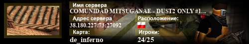 | Статус : Включен | Страна Адрес сервера : 38.180.227.73:27092 Игра : Counter-Strike : Source Карта : de_inferno Игроки : (1)24 / 25 | Загружен на : Сайт сервера : Не задан Обновлен в : 14:39 | Пинг : 61 мс | Версия : 1.1.2.7/Std ОС: Linux | VAC - Secured | ||