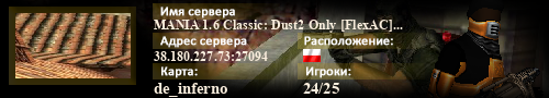 | Статус : Включен | Страна Адрес сервера : 38.180.227.73:27094 Игра : Counter-Strike : Source Карта : de_inferno Игроки : (1)24 / 25 | Загружен на : Сайт сервера : Не задан Обновлен в : 11:24 | Пинг : 63 мс | Версия : 1.1.2.7/Std ОС: Linux | VAC - Secured | ||