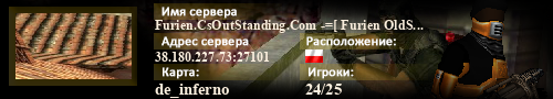 | Статус : Включен | Страна Адрес сервера : 38.180.227.73:27101 Игра : Counter-Strike : Source Карта : de_inferno Игроки : (1)24 / 25 | Загружен на : Сайт сервера : Не задан Обновлен в : 20:15 | Пинг : 63 мс | Версия : 1.1.2.7/Std ОС: Linux | VAC - Secured | ||