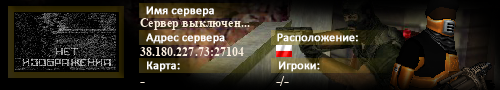 | Статус : Выключен | Страна Адрес сервера : 38.180.227.73:27104 Игра : Counter-Strike : Source Карта : - Игроки : - / - | Загружен на : Сайт сервера : Не задан Обновлен в : 19:19 | Пинг : 0 мс | Версия : 0.0.0 ОС: Linux | VAC - Secured | ||