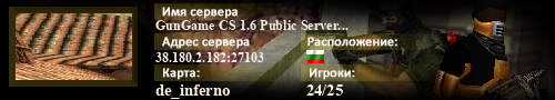 | Статус : Включен | Страна Адрес сервера : 38.180.2.182:27103 Игра : Counter-Strike : Source Карта : de_inferno Игроки : (1)24 / 25 | Загружен на : Сайт сервера : Не задан Обновлен в : 04:04 | Пинг : 76 мс | Версия : 1.1.2.7/Std ОС: Linux | VAC - Secured | ||