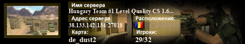 | Статус : Включен | Страна Адрес сервера : 38.133.142.134:27018 Игра : Counter-Strike Карта : de_dust2 Игроки : 29 / 32 | Загружен на : Сайт сервера : https://www.elitecstrike.ro Обновлен в : 13:35 | Пинг : 83 мс | Версия : 1.1.2.7/Stdio ОС: Windows | VAC - Secured | ||