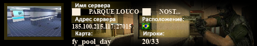 | Статус : Включен | Страна Адрес сервера : 185.100.215.117:27015 Игра : Counter-Strike Карта : fy_pool_day Игроки : 20 / 33 | Загружен на : Сайт сервера : Не задан Обновлен в : 00:17 | Пинг : 208 мс | Версия : 48 ОС: Linux | VAC - Disabled | ||