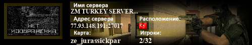| Статус : Включен | Страна Адрес сервера : 77.93.148.191:27017 Игра : Counter-Strike Карта : ze_jurassickpark3_lg Игроки : 2 / 32 | Загружен на : Сайт сервера : instagram.com/yasinsen61 Обновлен в : 22:15 | Пинг : 76 мс | Версия : 1.1.2.7/Stdio ОС: Linux | VAC - Secured | ||